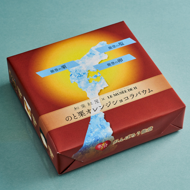能登の卵を使ってやわらかく焼き上げた生地に、能登の栗と塩をあわせ、センターへ濃厚なガナッシュを流し込みました。素材それぞれがもつ旨みとチョコレートの深いコクが調和する贅沢な一品です。