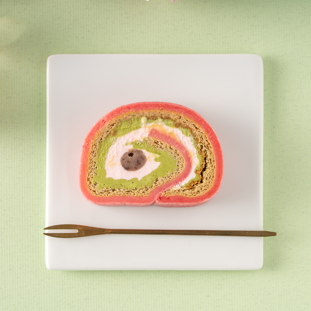 菱餅をイメージしたカラーリングが可愛い季節限定のモチモチ食感ロールケーキ。